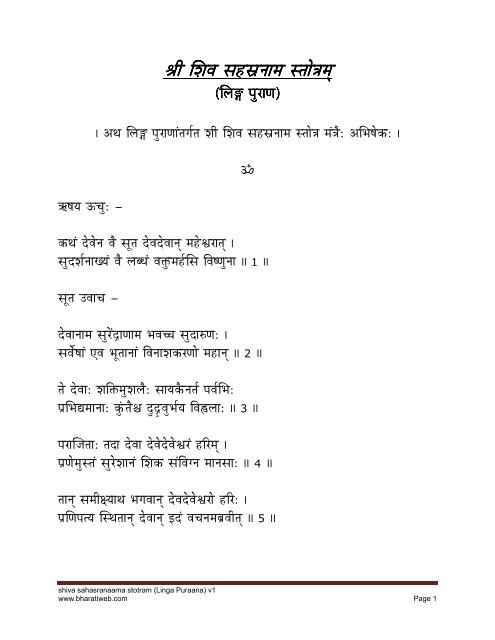 Shiva Sahasranama Stotram Ling Purana Bharatiweb